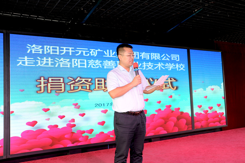 2017年9月21日上午,受許明月董事長委托,洛陽開元礦業(yè)集團有限公司副總經(jīng)理楊春生、總經(jīng)理助理叢萬通、辦公室主任張愛利及集團員工代表赴洛陽慈善職業(yè)技術學校進行捐資助學活動,洛陽慈善總會副會長兼秘書長郝春苑、慈善學校全體師生及相關媒體記者等參與了本次活動。